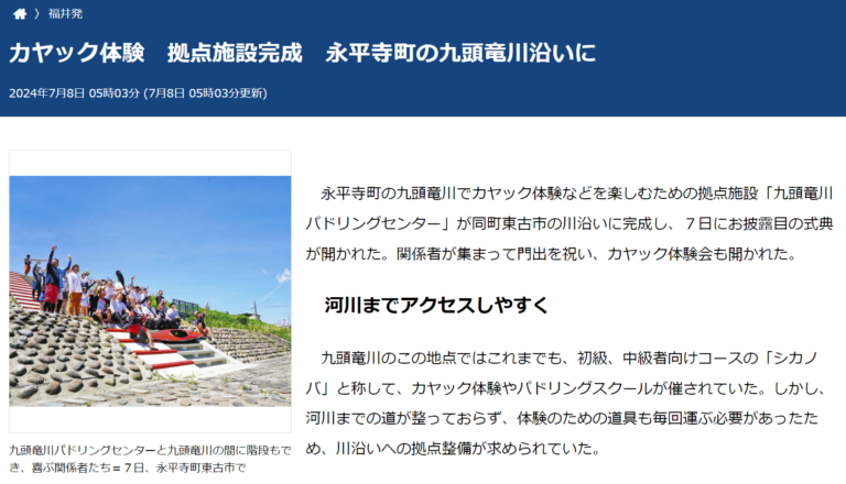 九頭竜川パドリングセンターの拠点施設が完成し、2024年7月7日にお披露目オープニングイベントを開催しました!