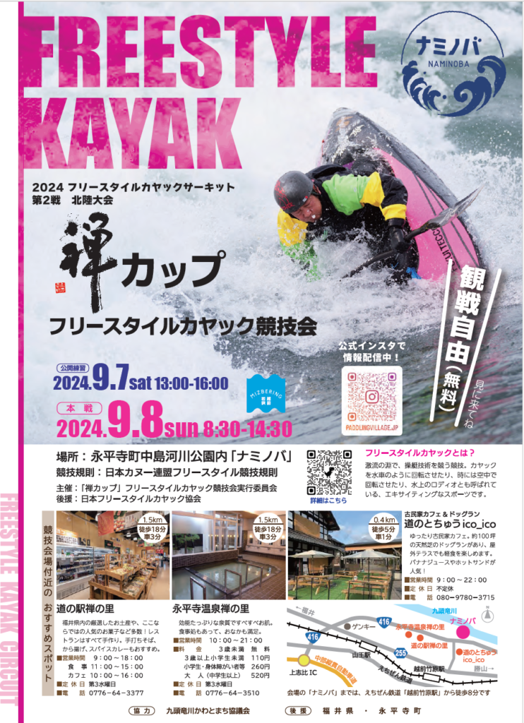 なお、第2戦は、我が九頭竜川のナミノバにて開催されます。観戦無料ですのでお気軽にお越しください。駐車場も完備しています。