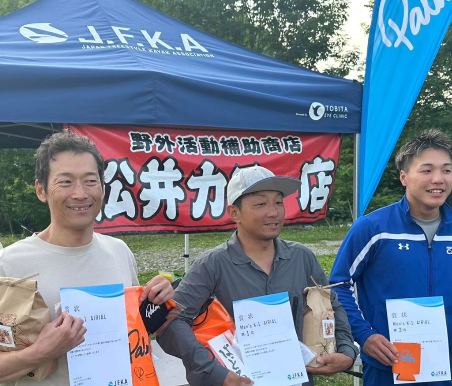 2024年7月14日(Sun)、北海道三笠市幾春別川のIcupの瀬にて行われた、JFKA(日本フリースタイルカヤック協会)主催の年間サーキット戦第1戦に出場した松永選手は、次々と大技を繰り出し優勝しました。上位は1,000点を超えるハイレベルでの争いとなり、日本全体のレベルが大きく上がってきていることを感じさせる大会となりました。公式リザルトはこちら。