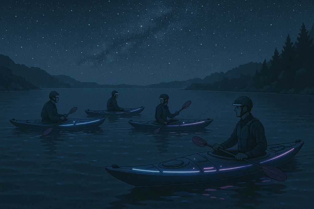 星が映る水面へ漕ぎだそう!風が無ければ星空が水面に映り、まるで宇宙空間に浮かぶような体験が出来ます。追加料金2,000円/人を頂きます。7月初から8月末の期間限定とします。お天気に左右されるため、お申込み後の前日に催行決定連絡します。