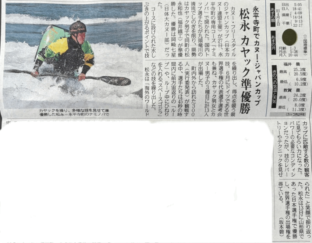2025年4月27日、福井で初開催となるフリースタイルカヤックのジャパンカップを無事開催しました。300名を超えるお客様のご来場ありがとうございました。